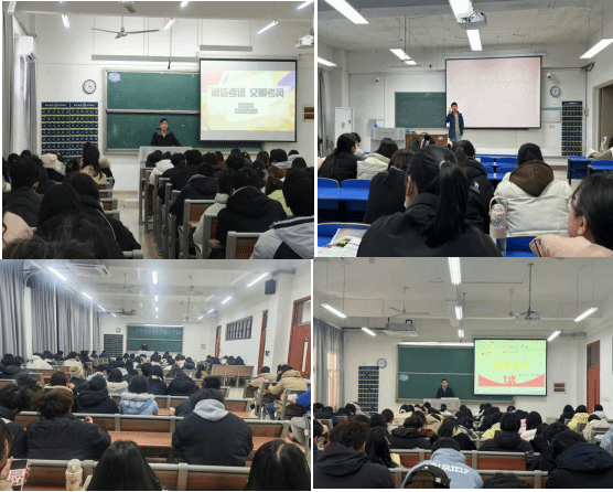 班会前期,学院通过调研梳理学生在期末阶段存在的共性困扰,如时间管理失衡、知识体系薄弱、考前焦虑明显等情况。辅导员刘全亚结合调研数据与典型案例,引导学生正确认识压力的普遍性与积极作用,打破“压力即负面”的认知局限,增强应对信心。辅导员王志结合学生各个专业不同,提供了备考策略,他鼓励学生应该积极主动探索适合自己的应考节奏。辅导员齐璇、赵成和付恩鹏则专门针对大一学生引导了诚信考试的重要性。