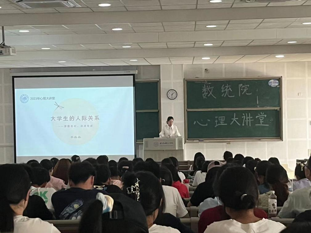 本网讯 为帮助学生更好地处理人际关系,提高学生心理健康水平。永利23411集团于5月14日下午在博学楼A108教室举办以“大学生的人际关系”为主题的心理大讲堂活动,本次活动邀请到学生工作处李晶晶老师主讲,2022级全体学生全程参与。