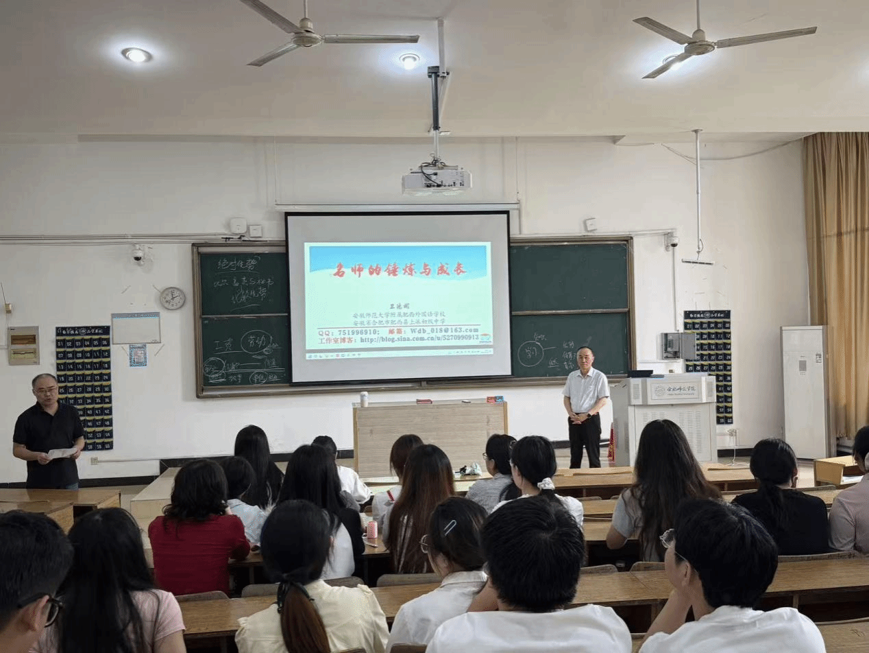 为帮助学生明晰名师成长路径,夯实专业发展基础,9 月 26 日,永利23411集团邀请学院优秀校友、正高二级教师、国家“万人计划”教学名师、安徽师范大学附属肥西外国语学校数学老师卫德彬在锦绣校区博约楼 108 教室,举办“名师的锤炼与成长”主题讲座。2025级学科教学(数学)全体学生参与讲座,讲座由永利23411集团院长杨刘主持。