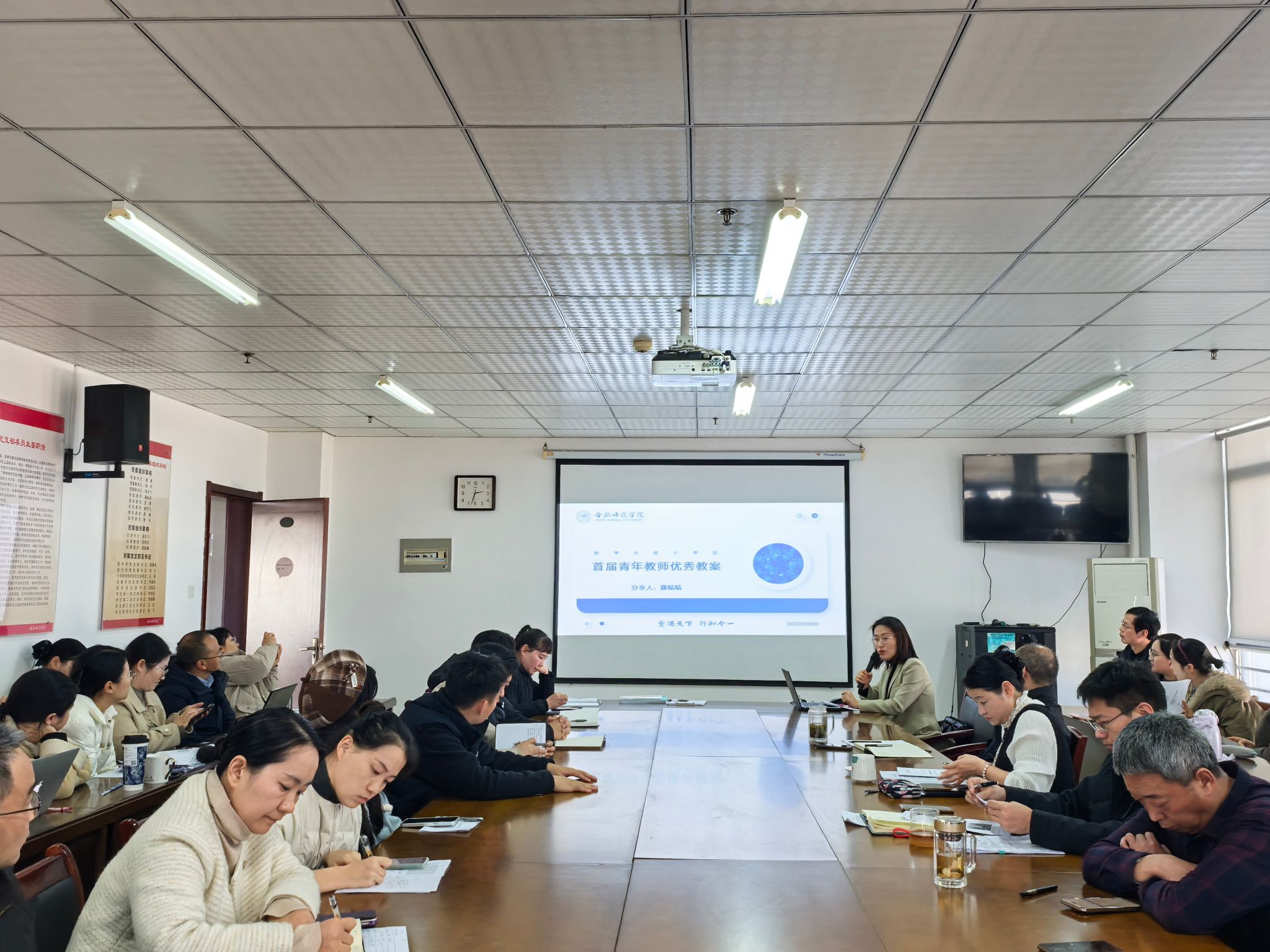 会上,康晴晴结合自己的申报经历和日常教案撰写心得,实打实讲解了优秀教案申报的关键要点。她先清晰梳理了教案类型、基本要素,并进行了教案分解,结合申报中的实际案例,一步步拆解了教案从搭框架、填内容到挖亮点的具体做法。针对青年教师常遇到的教案逻辑不清、重难点把握不准、教学目标与环节脱节等问题,康老师也给出了可直接借鉴的改进办法。整场分享中,康老师语言朴实、案例鲜活,把自己的教学感悟和申报经验毫无保留地分享给大家,内容实用、可操作性强。