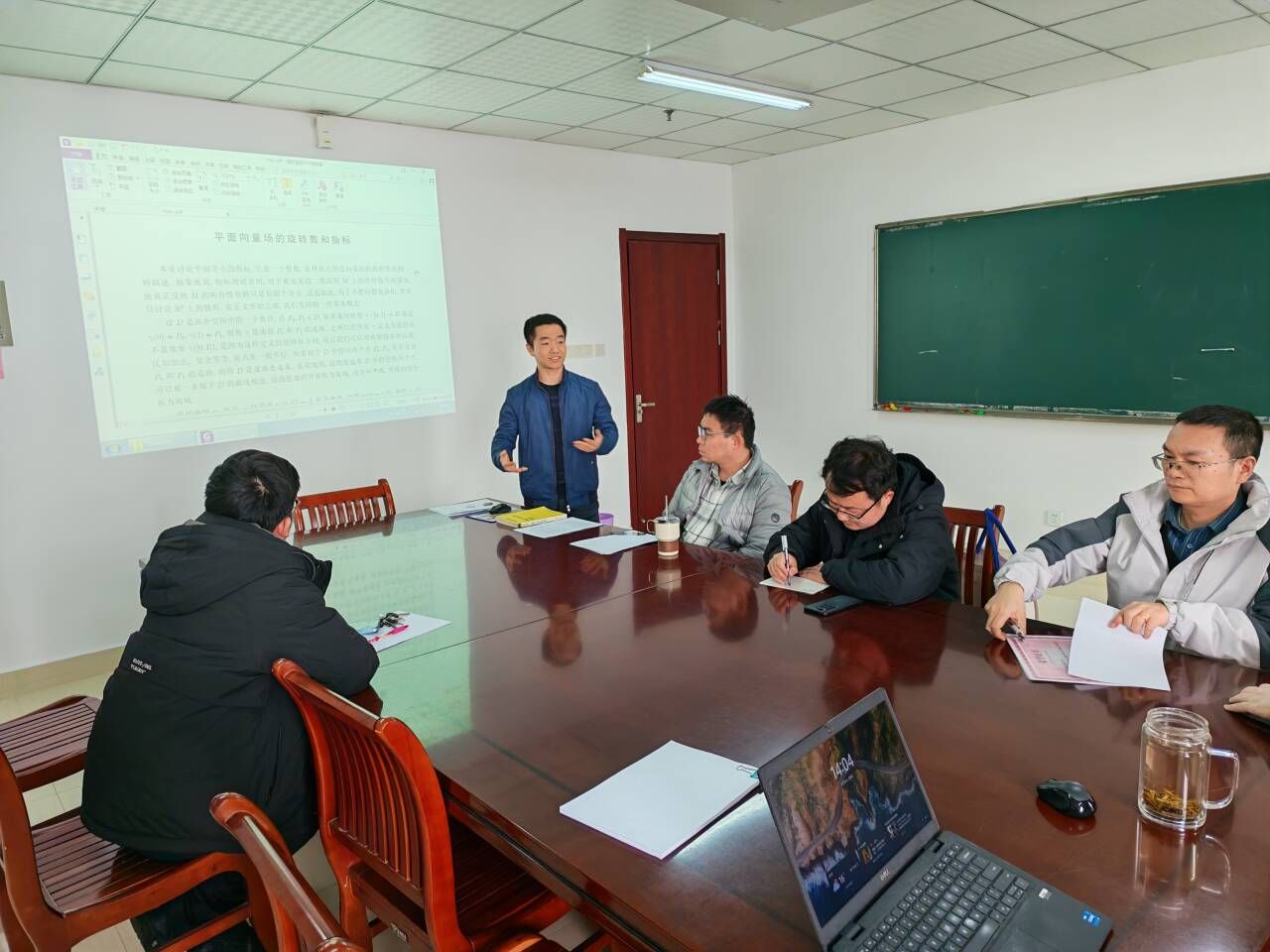 3月24日下午,永利23411集团在1108会议室举办微分方程与动力系统系列学术研讨会。本次组会由李尧其博士作题为“平面向量场的旋转数和指标”的主题报告,院长杨刘教授主持会议,部分微分方程与动力系统方向的教师参会。